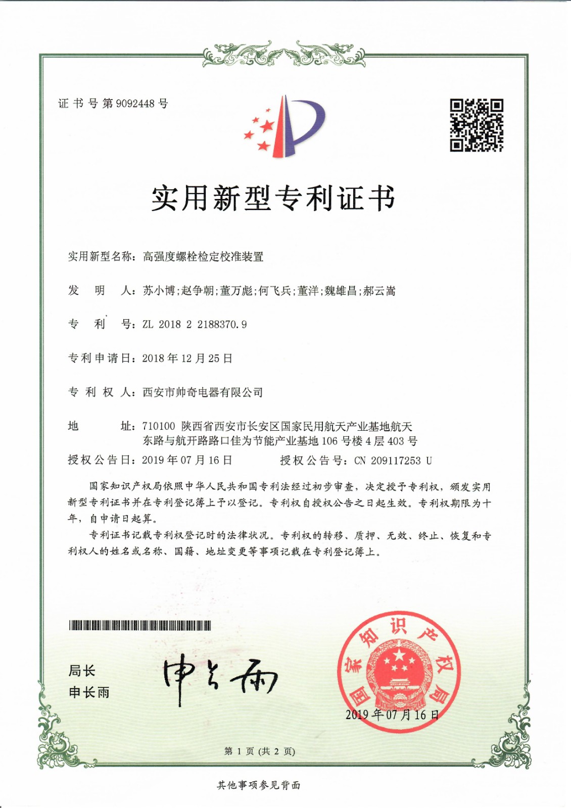 專(zhuān)利證書(shū)